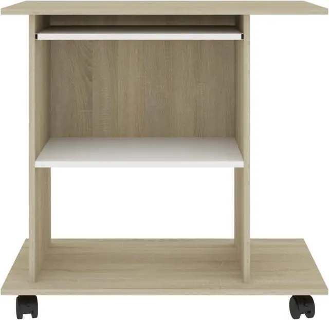 This modern computer desk is a stylish and functional piece that fits nicely into any office or study. With a sleek white and Sonoma oak finish, it's just right for smaller spaces, creating an inviting work area that helps get your creativity flowing.