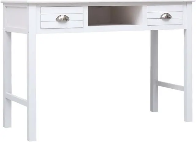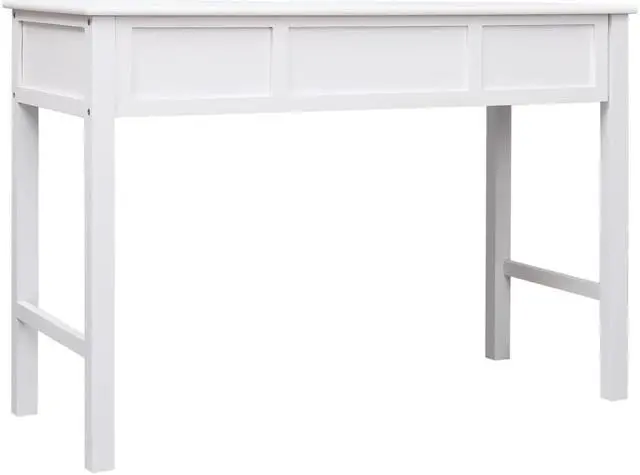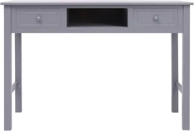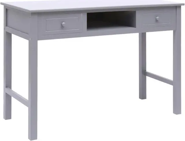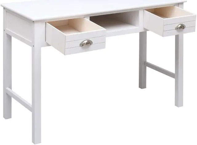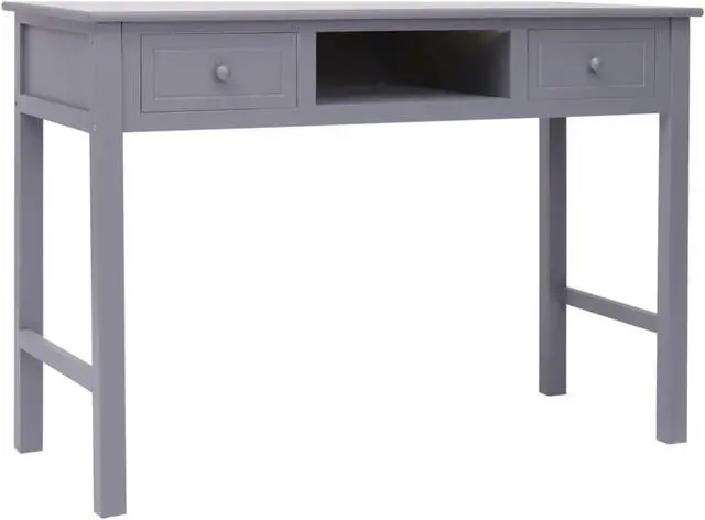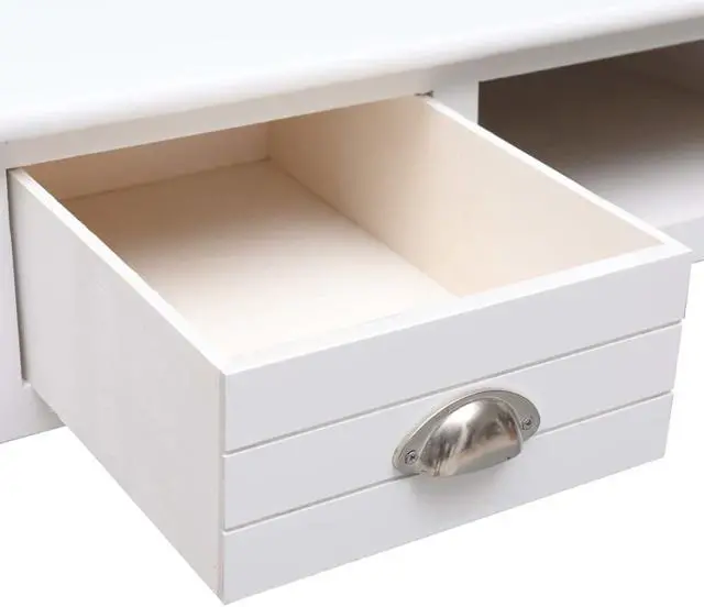 Our classic wooden desk exudes a vintage charm that will make it a distinctive addition to your home or office. It can also be used as a console table, computer table, side table and more. Made of quality paulownia and poplar wood, this desk is sturdy and durable. It features 2 drawers and 1 open compartment in the middle for keeping your files and other home office essentials organized and within easy reach. This desk is easy to assemble.