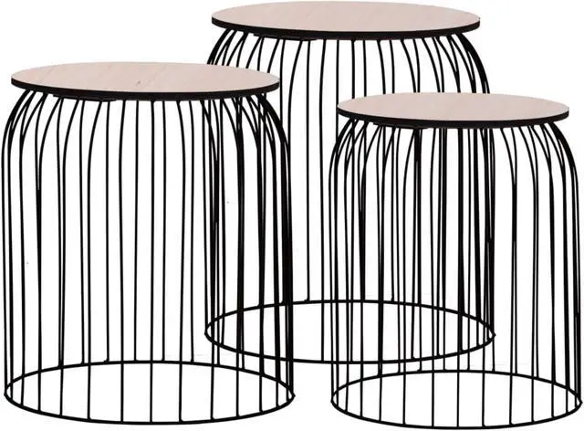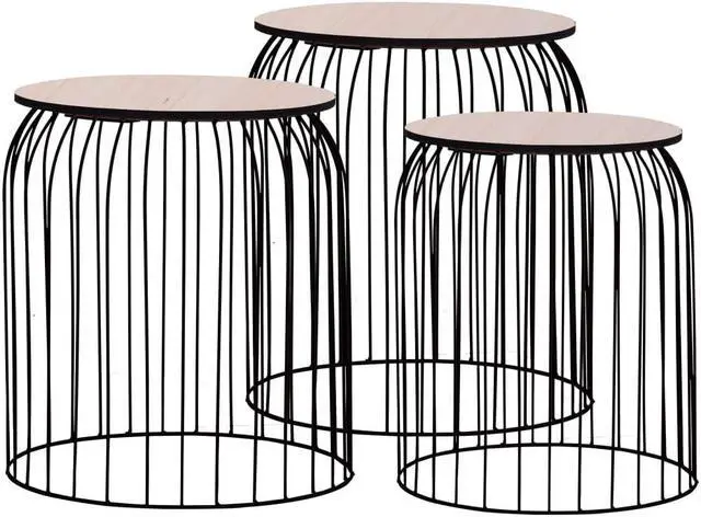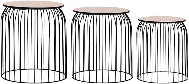 This set of 3 coffee tables exude a vintage charm and will make a distinctive addition to your home decor. They can also be used as storage baskets, couch tables, side tables, etc. The solid wood tabletop provides a smooth and stable surface on which you can place drinks, vases or other decorative items. By removing the top, you can turn the side table into a storage basket. Moreover, the smaller table can be placed inside the larger one to save space. The strong powder-coated metal frame adds to the robust construction as well as an industrial look.