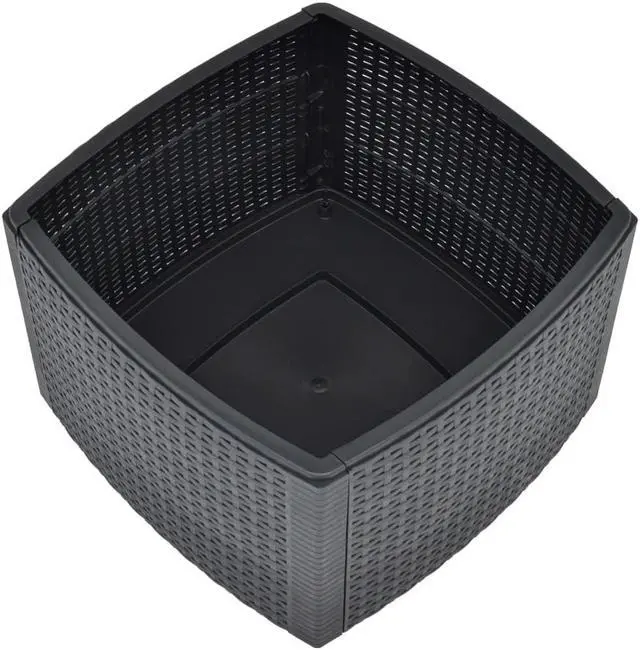 Expand your garden furniture set with this multifunctional side table! This garden table is made of weather-resistant and maintenance-free polypropylene with a modern, flat, rattan look and stylish elements. You don't have to worry about the material discoloring, rusting, rotting or peeling, which makes the side table ideal for daily outdoor use! Additionally, it has a convenient storage compartment for any items that you would like to keep closer while relaxing in the garden.