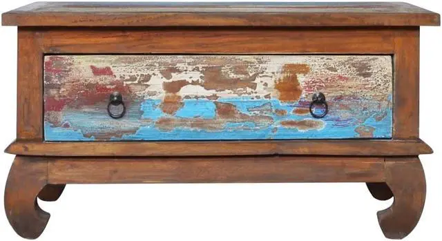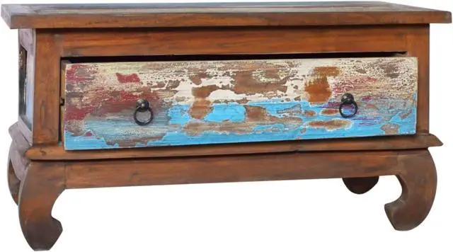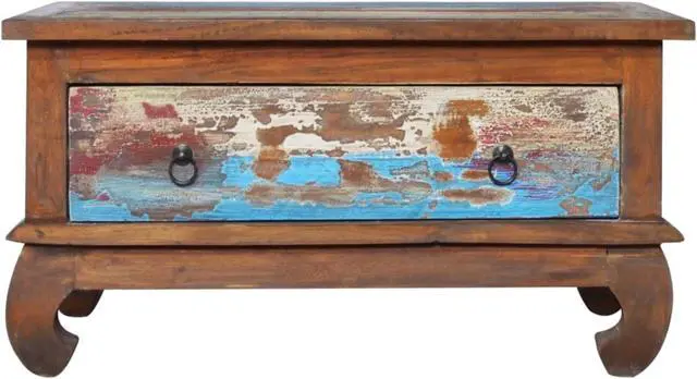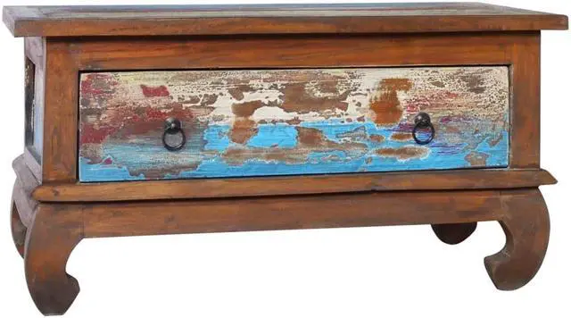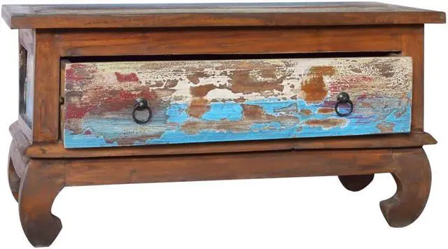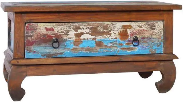 This wooden coffee table, with a retro yet rustic style, is meant to be the eye-catcher in your home decor. Constructed from extremely durable teak hard wood, this drawer table has been finished and polished with natural oil to give a smooth appearance. The multicolor spots pattern and unique claw-legs design complete the vintage look. Also, the equipped drawer helps keep your stuffs organized and within reached. Teak wood is known for its exceptional strength, making it far more suitable for furniture than any other kind of wood. Teak wood is the perfect choice if you want to purchase a long lasting piece of furniture.