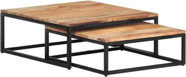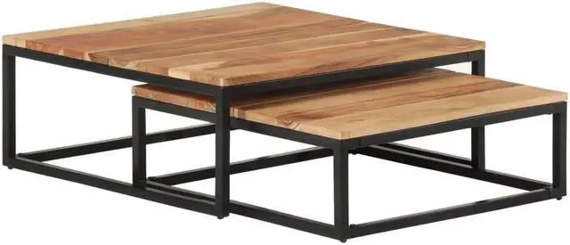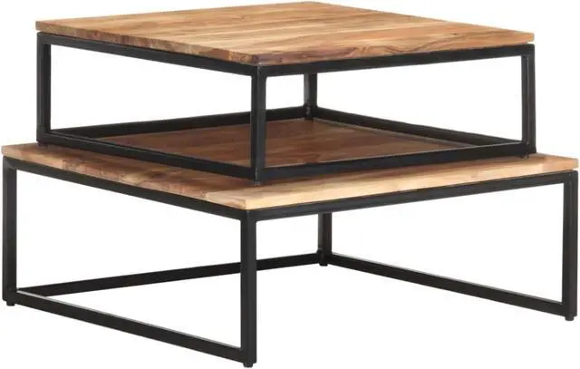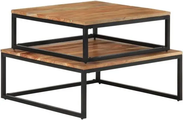 Add an industrial look to your living space with these wooden nesting coffee tables! The coffee table is made of solid acacia wood, which is a hardwood with dense grains. This beautifully-designed center table is stable, durable and eye-catching. Additionally, the exquisite craftsmanship and beautiful wood grains make every piece slightly different from the next. The black powder-coated iron base provides additional stability and sturdiness for the tables. Additionally, the small table can be stored underneath the larger one to save space.