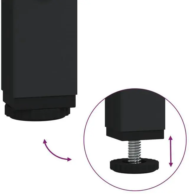 Adjustable feet: The adjustable feet with plastic pads keep the standing desk balanced on uneven ground and increase stability.