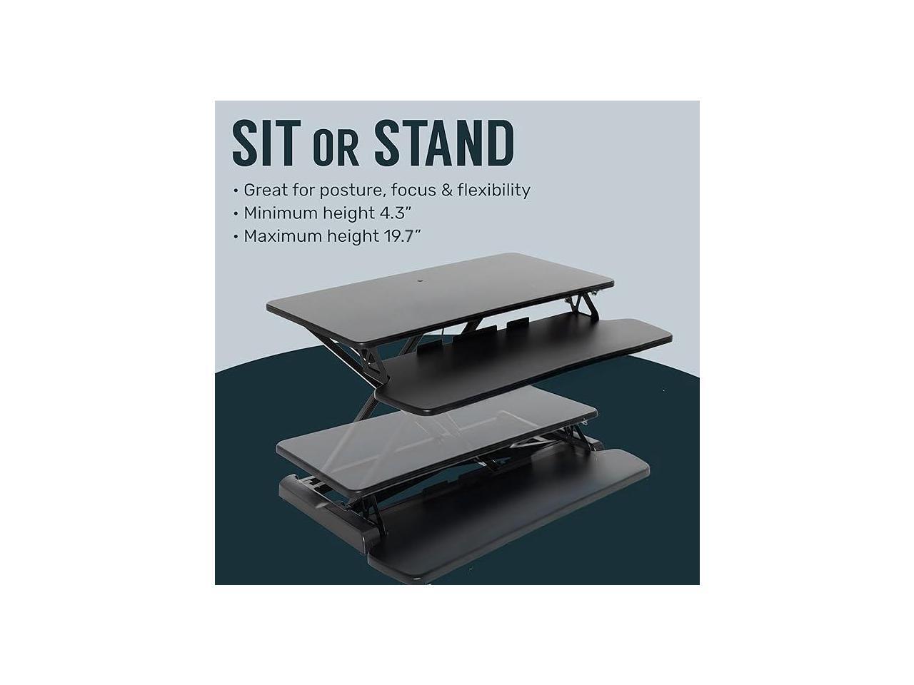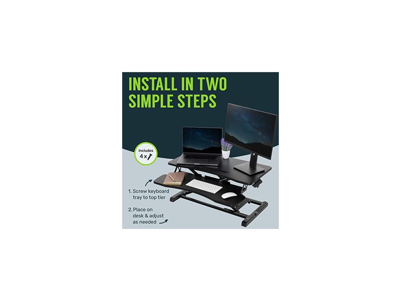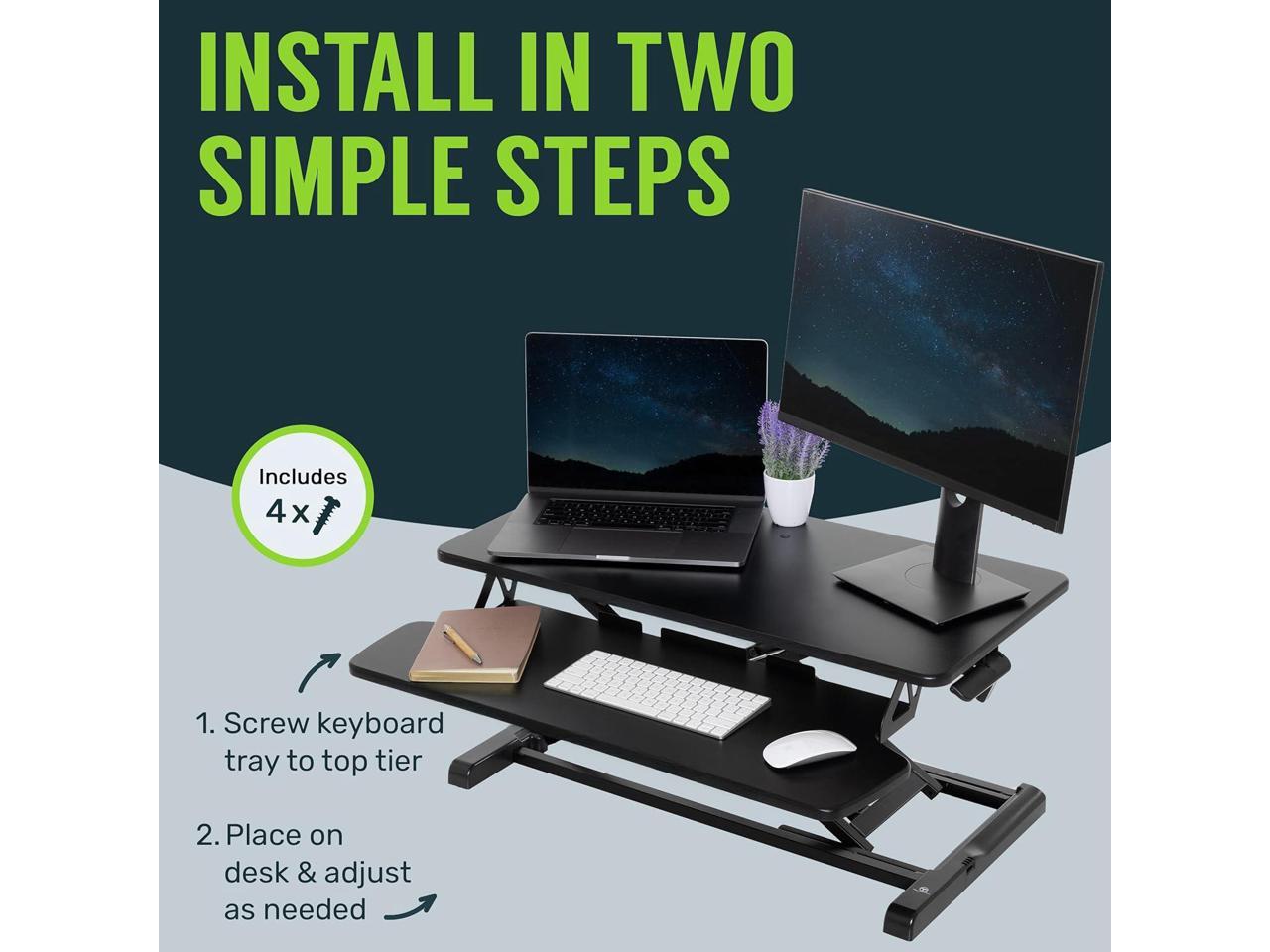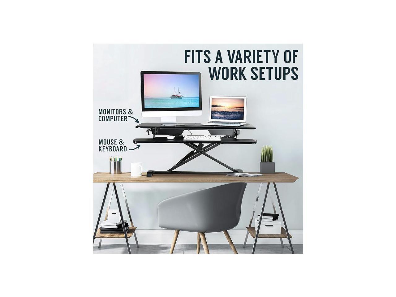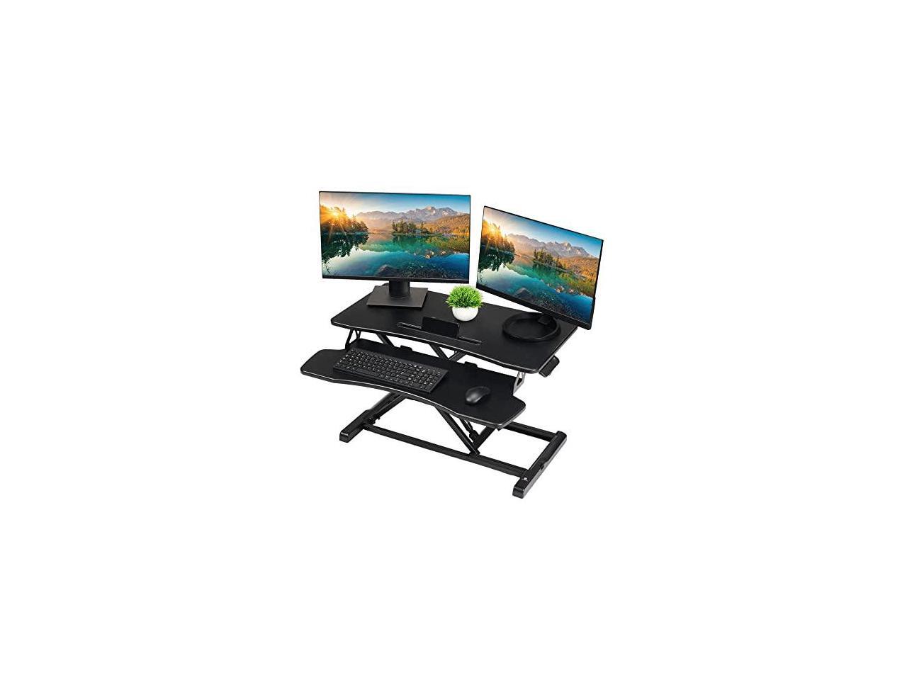TechOrbits Standing Desk Converter - 37" Stand Up Desk Riser - Tabletop Sit Stand Desk Fits Dual Monitors - Two Tiered Height Adjustable Workstation With Removal Keyboard Tray