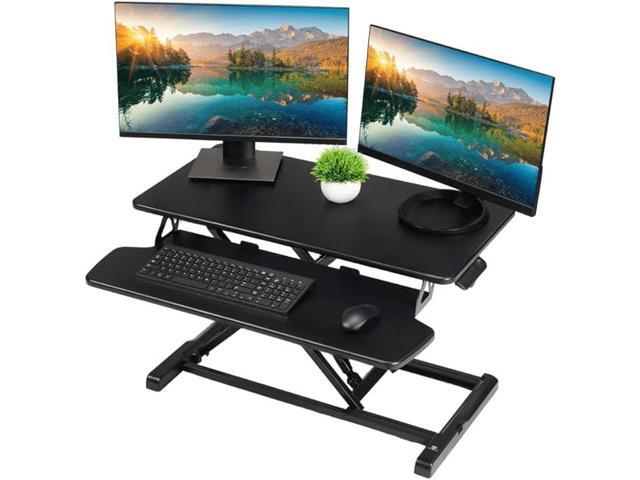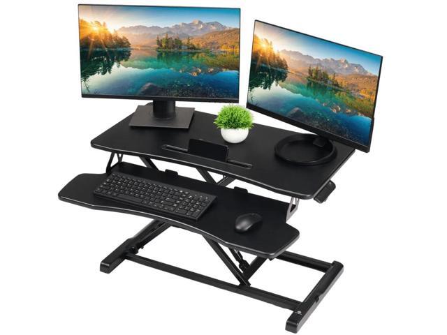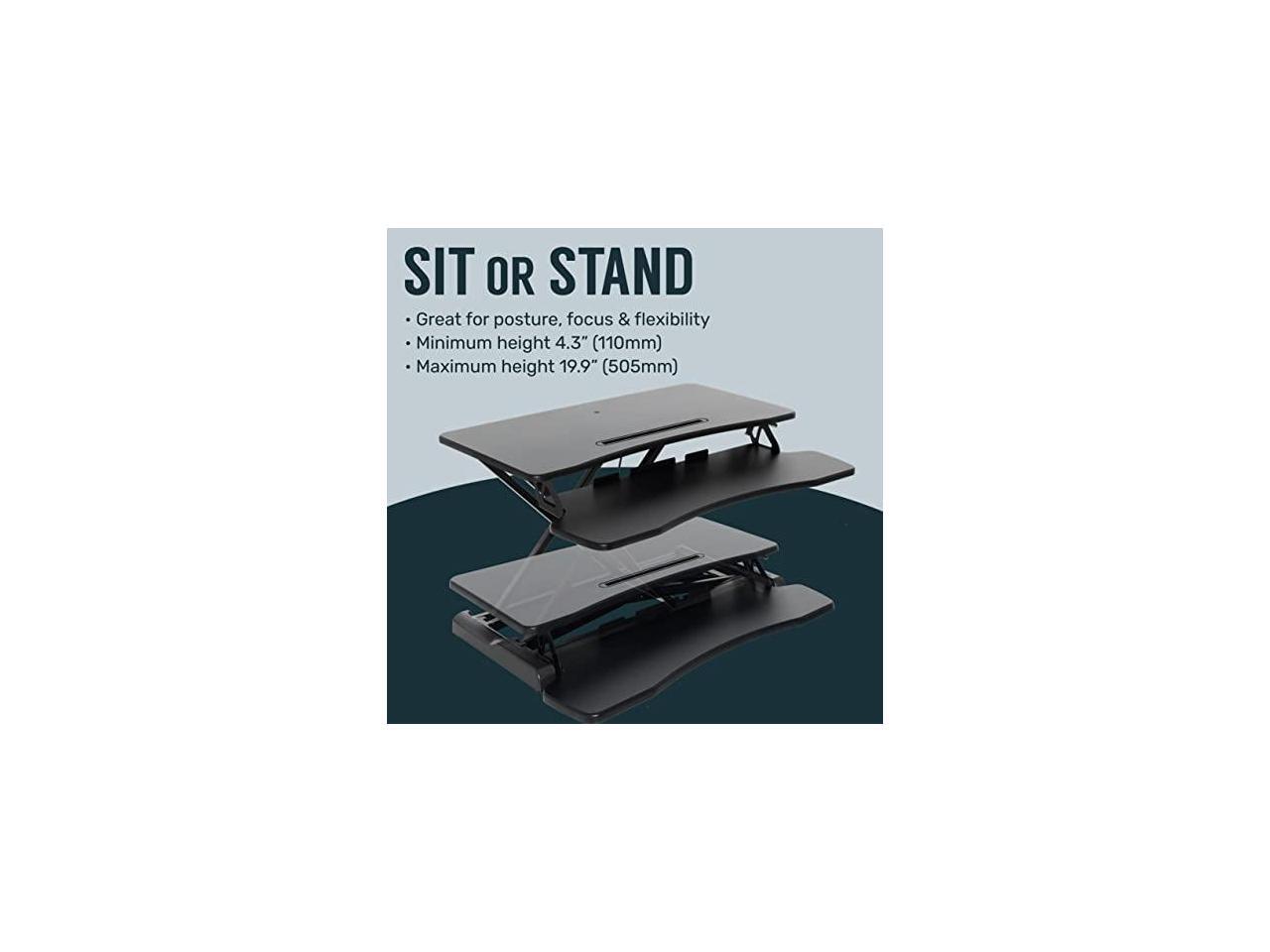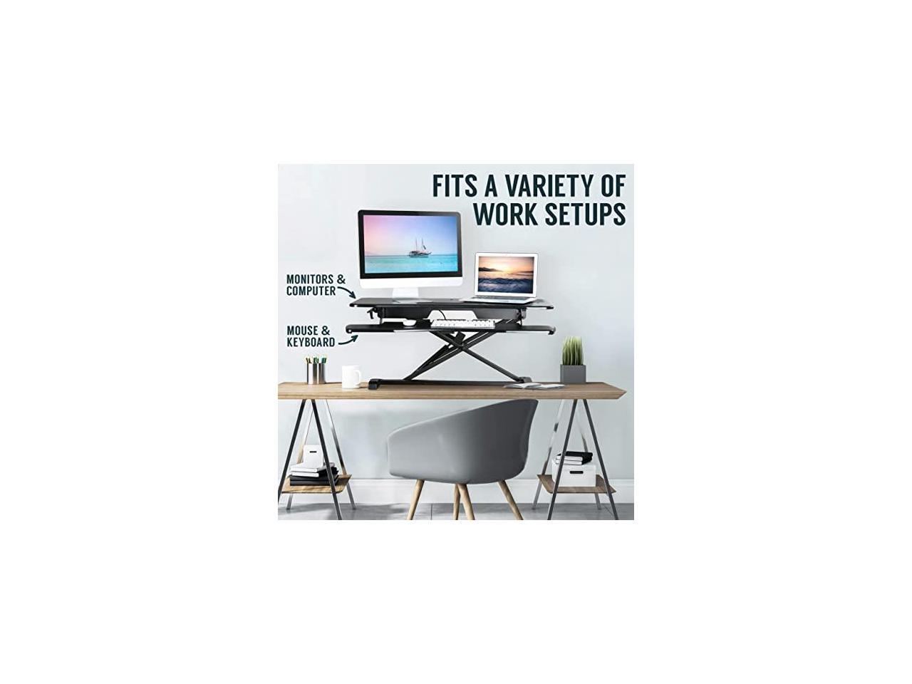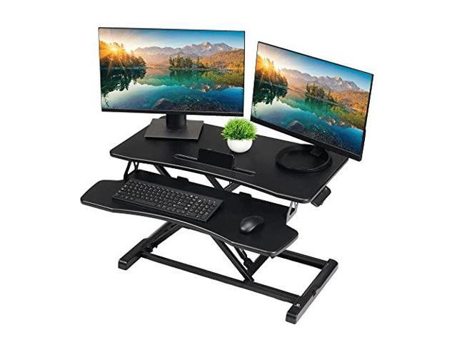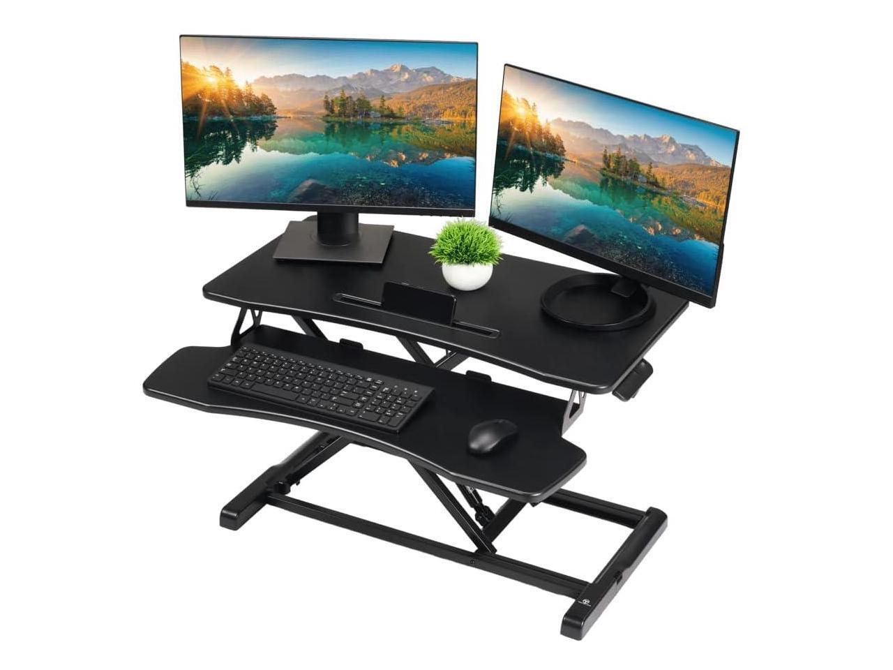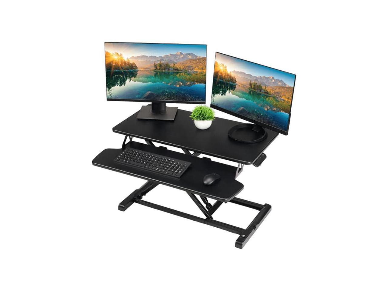 TechOrbits Standing Desk Converter - 37" Stand Up Desk Riser - Tabletop Sit Stand Desk Fits Dual Monitors - Two Tiered Height Adjustable Workstation With Removal Keyboard Tray