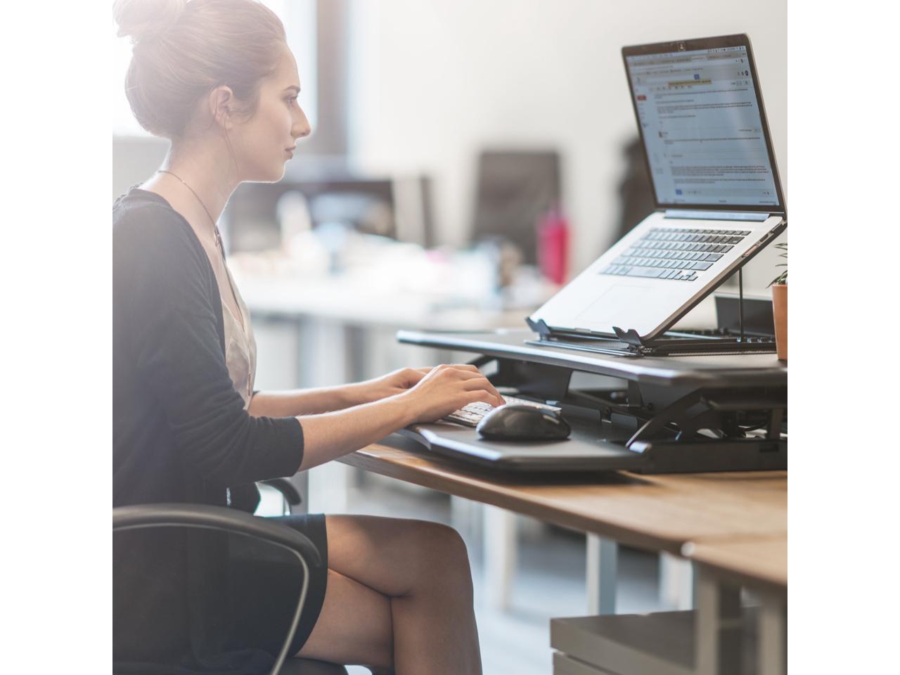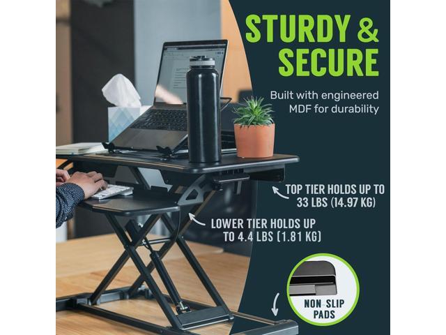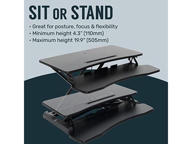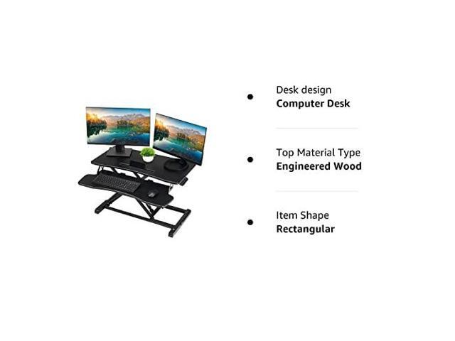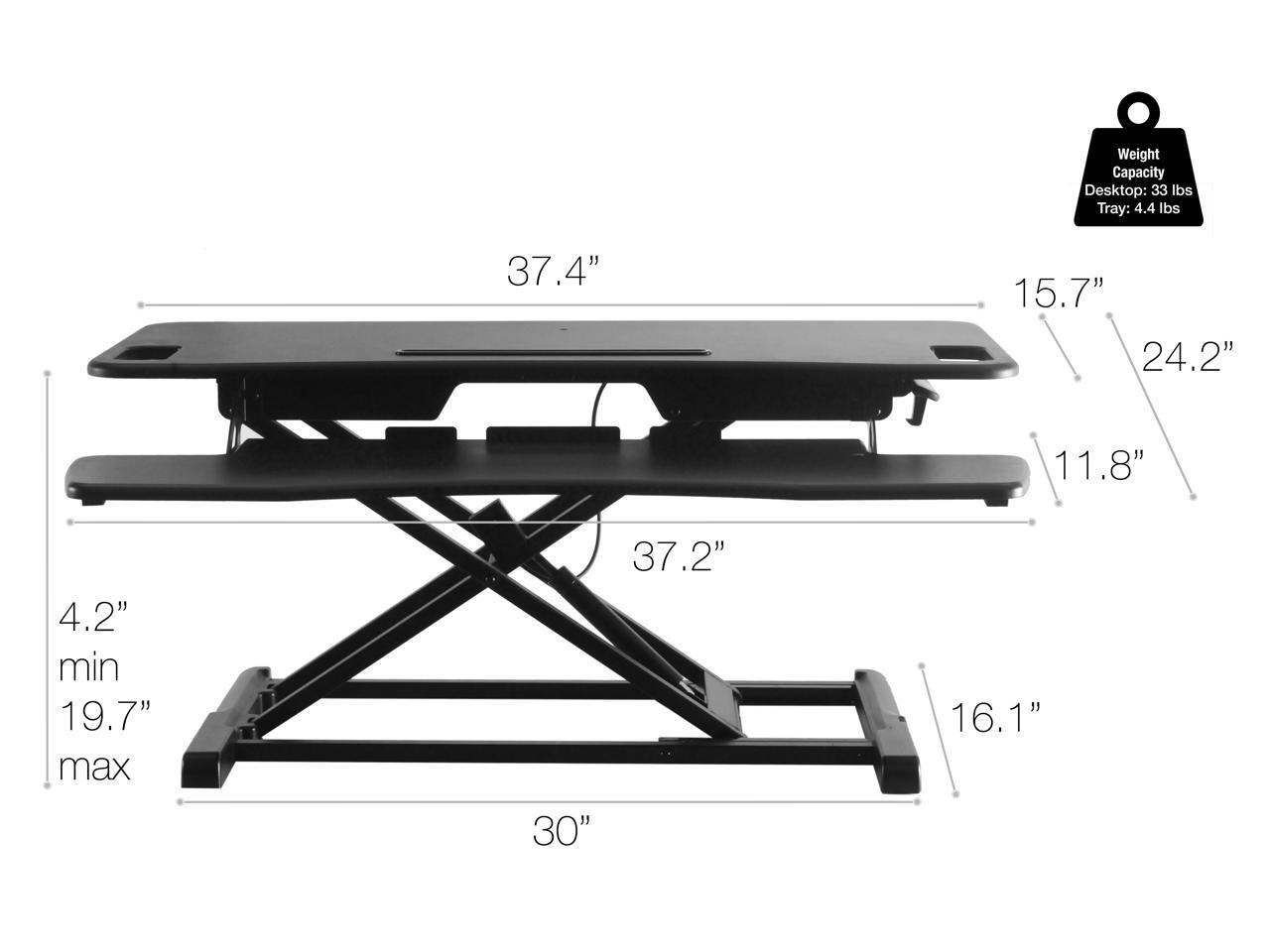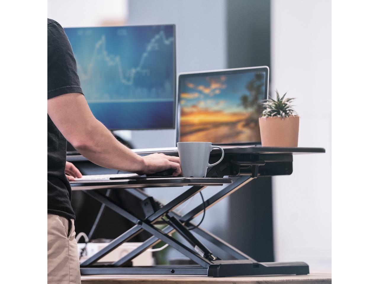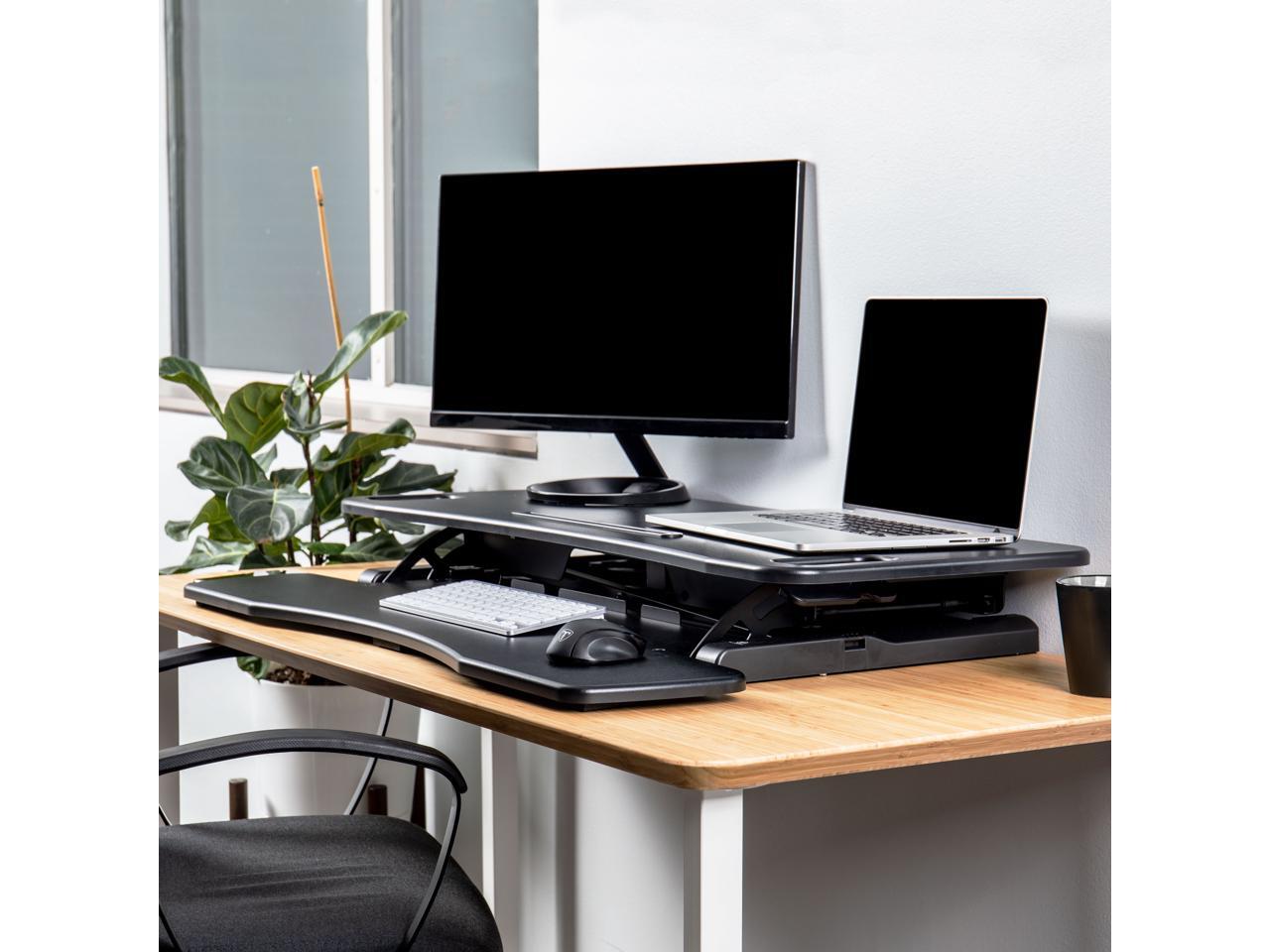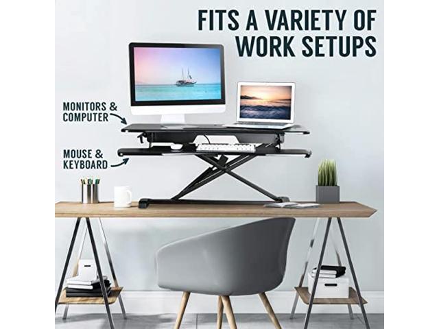 TechOrbits Standing Desk Converter - 37" Stand Up Desk Riser - Tabletop Sit Stand Desk Fits Dual Monitors - Two Tiered Height Adjustable Workstation With Removal Keyboard Tray