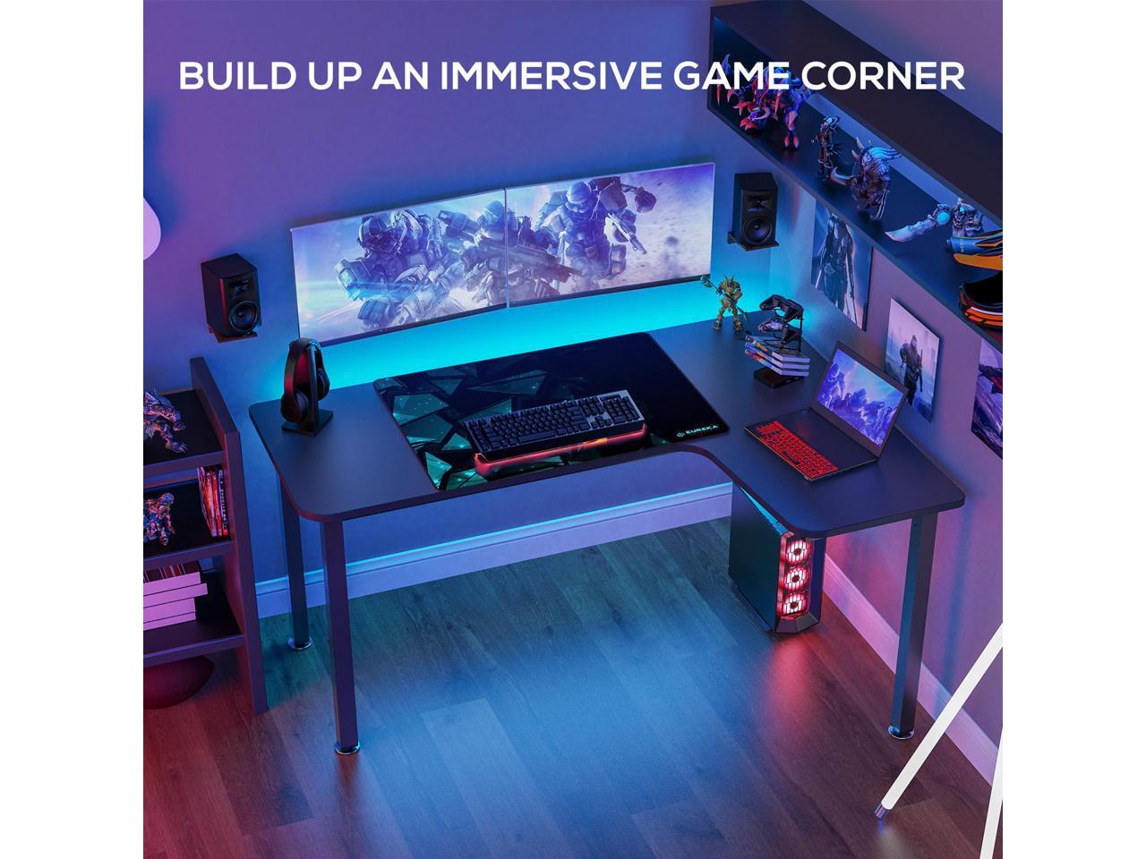 - Larger desktop surface - The L shape corner gaming desk measures 62"(L) x 44"(W) x 30"(H). The 30-inch-high large legroom underneath, provide ample space to stretch your legs freely or storing file cabinet.