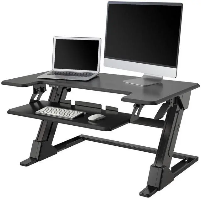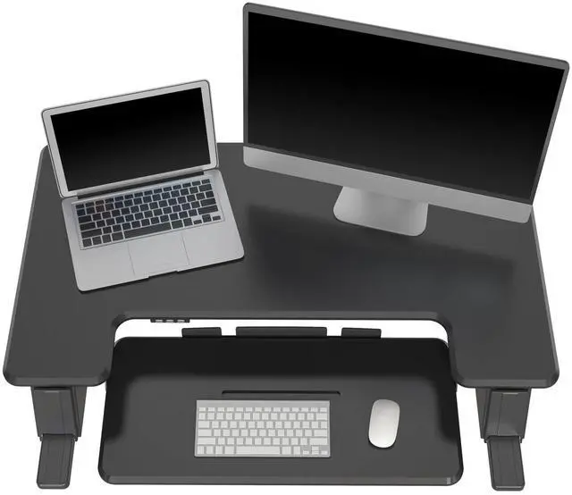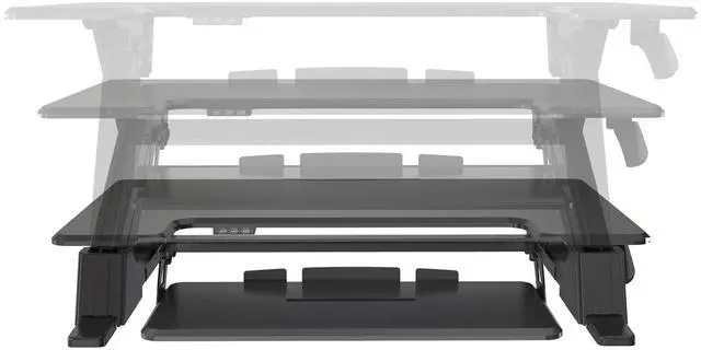 Place this Realspace Standing Desk Converter on your worktable or desk to transform it into an active workstation. With the pneumatic lift-assist, you can easily transition from sitting to standing and back again, as the riser can move between 5.1" and 19.3 '' above your work surface. You'll also be able to maintain a comfortable typing position because the removable keyboard tray moves in accordance with the top surface. Plus, 3 USB ports are located under the desk surface to allow you to easily connect your peripherals. Ergonomic design with you in mind - choose your comfort level and get more done.