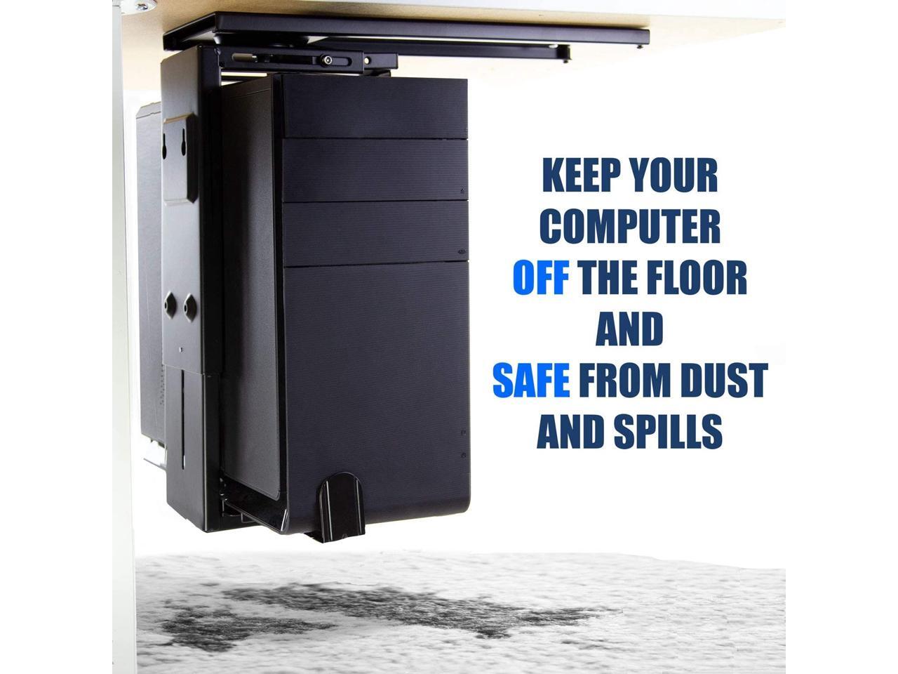 Mount-It! Adjustable Under Desk Computer Mount with Anti-Theft Screw, CPU Holder with Sliding Track and 360 Deg Swivel for Desktop Computer Towers, 22 Lb Load Capacity