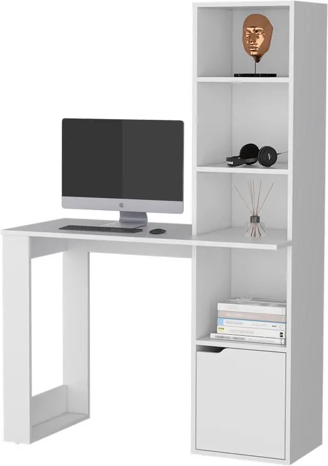 In addition to the bookcase, the Anson Computer Desk boasts a single-door cabinet ( 13.7"H x 12.3"W ) with interior storage for discreetly tucking away office supplies or personal belongings. This thoughtful design element keeps your workspace clutter-free and focused.