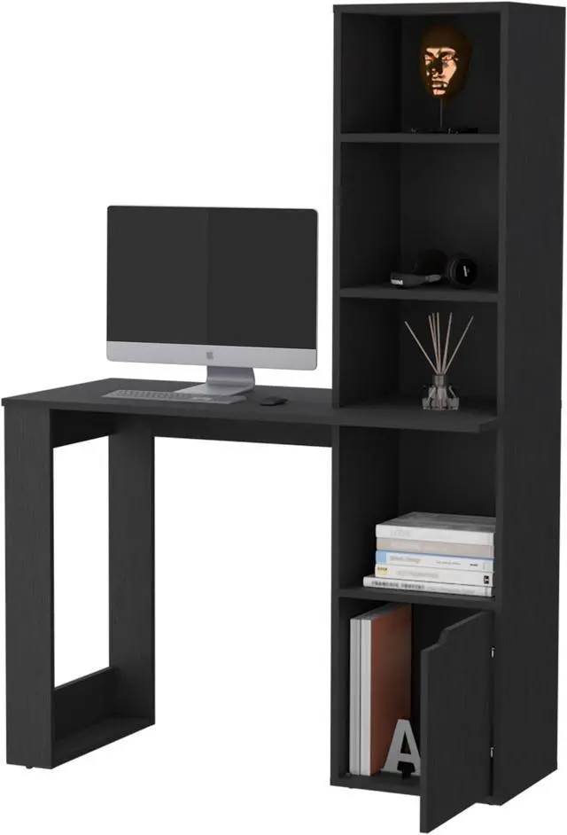 FM FURNITURE Anson Computer Desk with 4-Tier Bookcase and 1-Door Cabinet, Black -Office