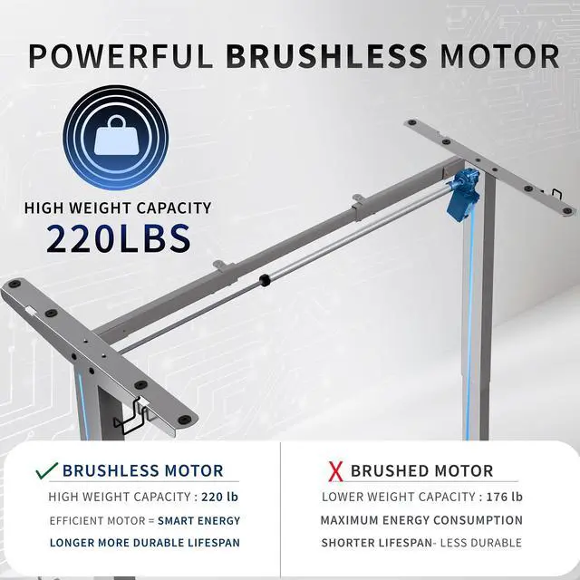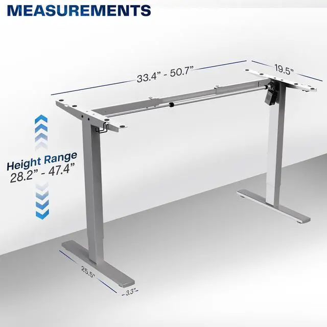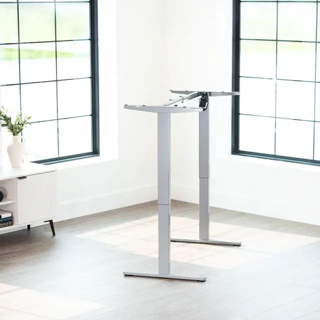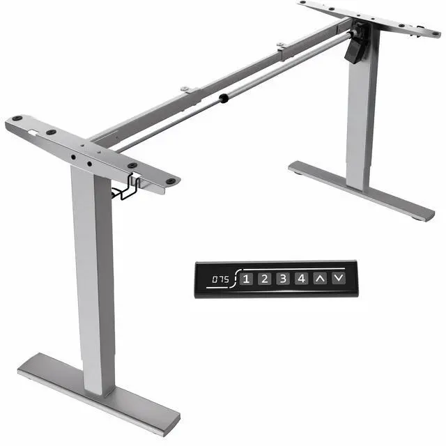 Create your own standing workstation and be able to sit or stand on demand throughout the long work day with Gray Electric Single Motor Desk Frame (DESK-V100EGY) from VIVO! Adjust your desks height in seconds with this sturdy frame featuring a single motor lift system for smooth transitions, a memory controller, adjustable feet, and solid leg support for desk surfaces weighing up to 220 lbs. The thermal motor is protected against overheating to ensure this frames safety and longevity. Cable management clips keep cords clean and organized so they dont interfere with height transitions. We include all the hardware and instructions for assembly, so you can complete your very own ergonomic workstation with a solid frame that supports your equipment and lets you think on your feet!