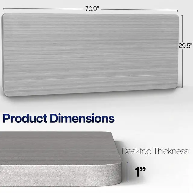 Find the perfect table top solution for your standing desk frame with the Dark Gray 71" x 30" Table Top (DESK-TOP71G) from VIVO! Featuring an extra spacious surface in a modern dark gray color, this product provides the finishing touch to your adjustable workstation. Go from sitting to standing with all of your equipment and accessories safely resting on this sturdy platform. Compatible with both manual and electric frames measuring 51 to 70 in length, this extra-wide table top gives you options! Whether you're creating your very first sit to stand workstation or you need a replacement part, this desk surface was built to last!