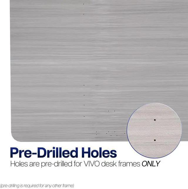 Please Note: The pre-drilled holes fit our VIVO desk frame models. Pre-drilling will be required to fit most other desk frames.