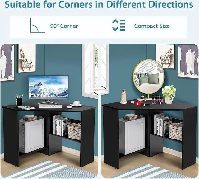Tangkula Corner Desk, 90 Degrees Triangle Corner Computer Desk for Small Space, Bedroom Corner Makeup Vanity Desk with Storage Shelves & CPU Stand, Space Saving Corner Desk