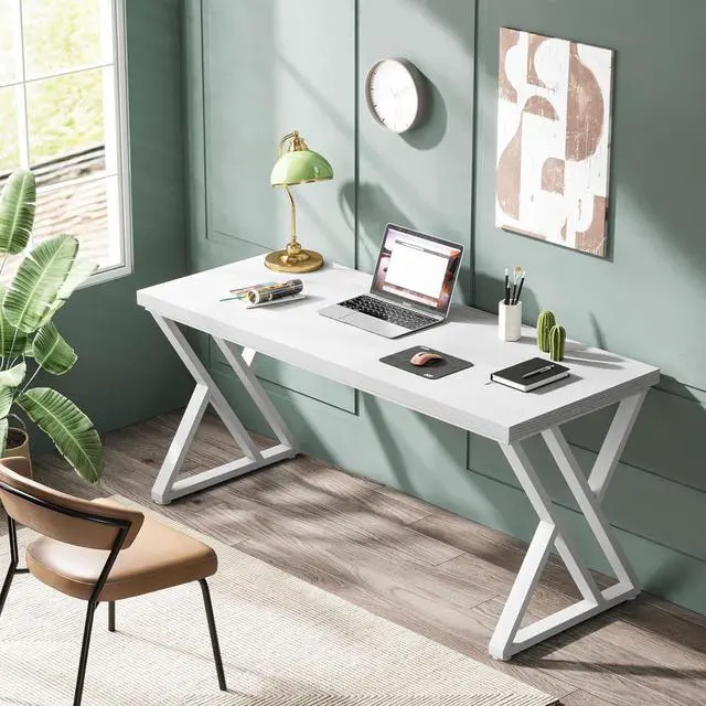 Spacious Desktop & Leg Room: Measuring 29.52 '' H x 55.12 '' W x 23.62 '' D overall, the large desk surface allows plenty of room for laptop, books, office supplies and paperwork, and the smooth top makes for easy cleanup and writing. Ample space under desk ensures any chair can fit under desk, and allows your legs relax after long day of working.