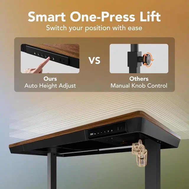 Convenient Memory Presets: Featuring 3 programmable height settings, the smart control panel lets you switch to your preferred height with a single touch no more tedious manual adjustments.
