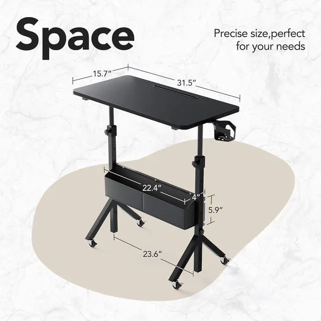 Ergonomic Adjustable Height:Manual height adjustment from 28.35-46.5 (72118 cm) with 6 levels fits both sitting and standing work. Supports users up to 6.3 (190 cm), The spacious 31.5" x 15.75" tabletop provides ample room,making it an small standing desk for home or office use.