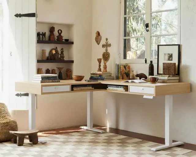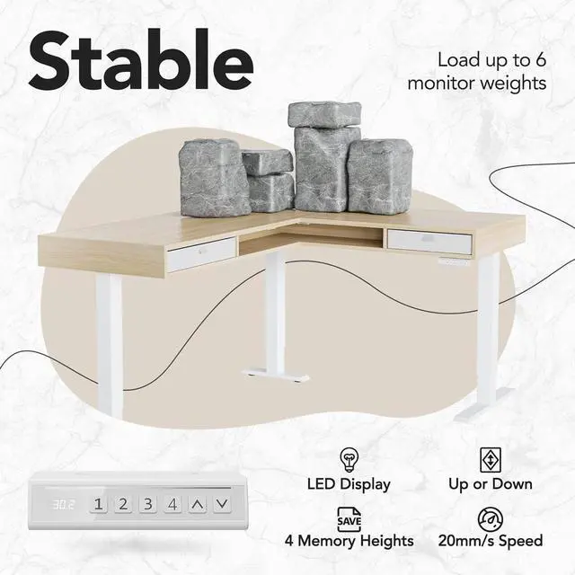 A Perfect Ergonomic Height: With this L-shaped desk, find your ideal ergonomic height between 27.6 and 46.5 with a whisper-quiet height adjustment. With 4 programmable memory settings, you can save preferences for you and your family, switching between favorite positions instantly. Seamlessly adapt your posture without disrupting your workflow or the peace of your home. The wide height range accommodates any seat or stance, making an active lifestyle effortless