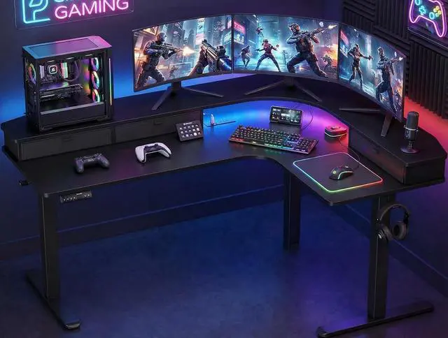 Ergonomic L-Shaped Desk: Extend your workspace with this L-shaped desktop that provides room for separate work and personal task areas. You can position your chair in the corner with a desktop on either side to rest your arms.