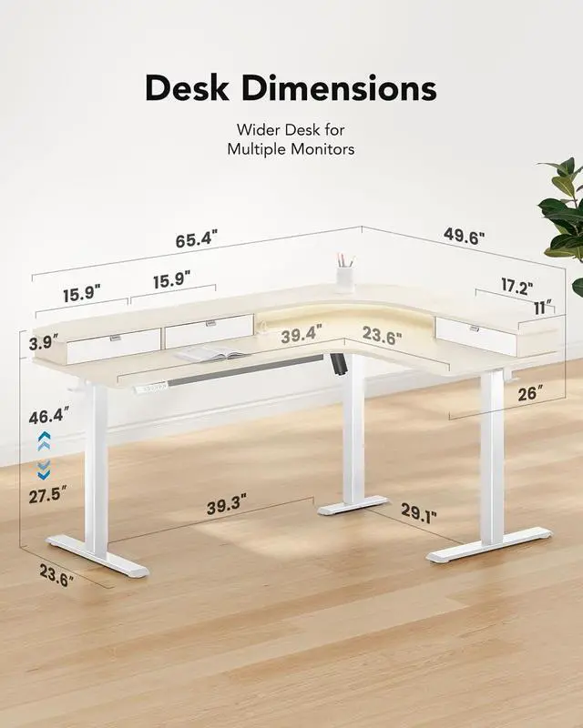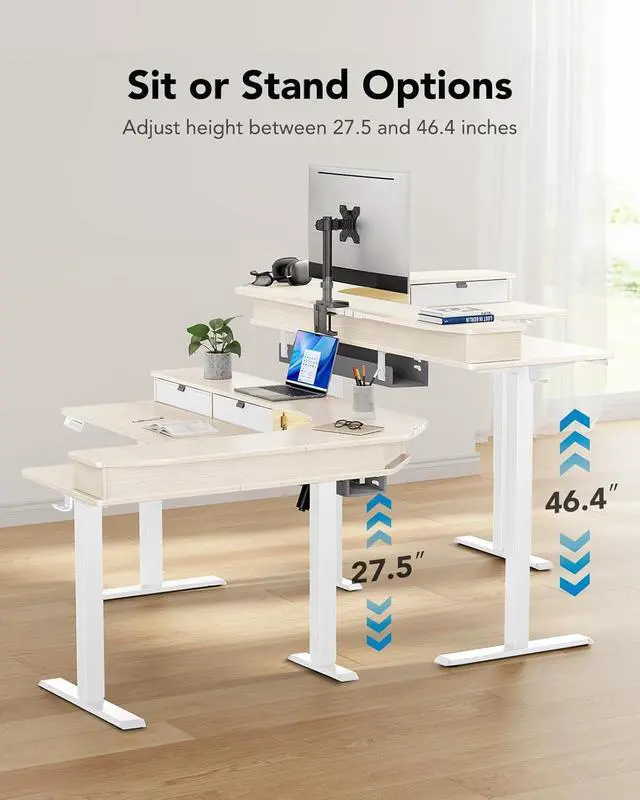 Sit-to-Stand Workstation: This adjustable standing desk allows you to customize your workstation for optimal comfort and improved efficiency. Desk height is adjustable from 28 to 46 with three height memory presets to easily switch between your favorite work positions.