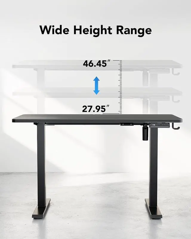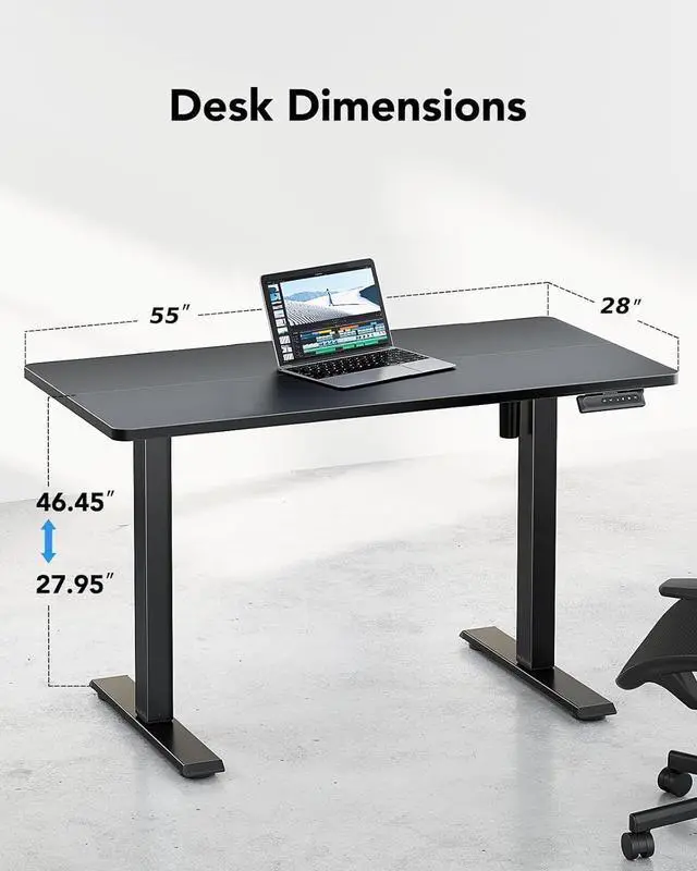 HUANUO Electric Standing Desk, 55" x 28" Height Adjustable Desk, 4 Memory Height Settings, Sit to Stand Up Desk for Home Office, with Headphone Hook, Cable Manager, Black
