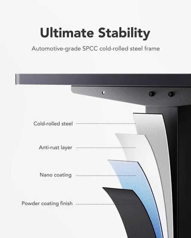 Ultimate Stability: The strong desktop rests on a sturdy frame built with automotive-grade SPCC cold-rolled steel.