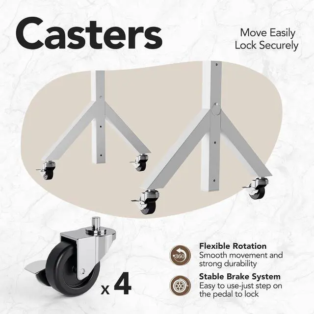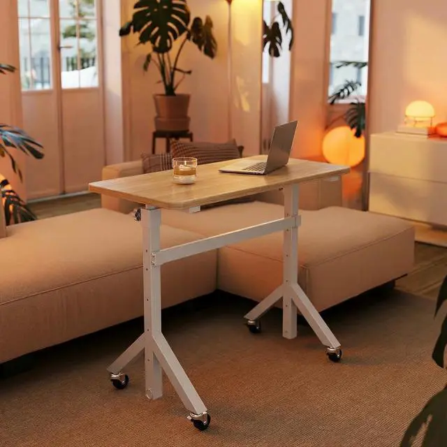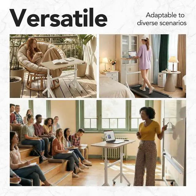 Portable Standing Desk with Wheels: 4 smooth-rolling 360° casters make this portable desk on wheels easy to move anywhere. Each caster is equipped with an individual lock, allowing you to securely hold the mobile desk in place the moment you find the perfect location, ensuring stability when you need it.