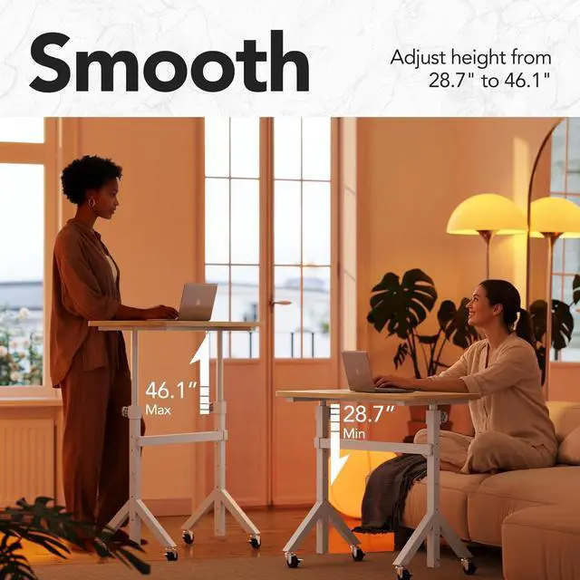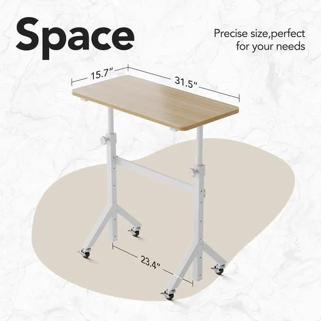Adjustable Height Rolling Desk: Adjustable height 28"-46", easily find your perfect ergonomic position for both sitting and standing. The spacious 31.5" x 15.75" tabletop provides ample room for your laptop, monitor, and other essentials, making it ideal as a rolling desk adjustable height for any task.