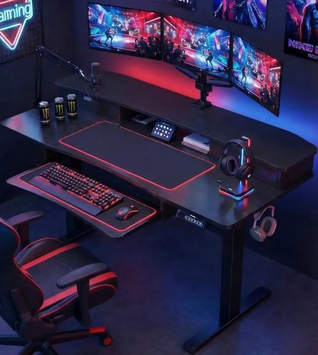 C-Clamp Mount Compatible: The stand up desk has a 2.36 extended rear top panel to clamp a monitor mount, microphone, or light on the riser edge. You can also opt to place your monitors directly on the riser, raising your screen closer to eye level for ergonomic comfort. Whether you prefer to work sitting or standing, the office desk is optimized for improved efficiency.