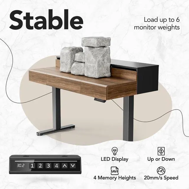 Ergonomic Home Office Desk:Electric standing desk has a sturdy steel frame with aerospace-grade lifting column connectors (still stable & secure after testing 100,000 times). It's a firm foundation for work, even at full height.