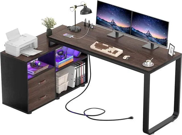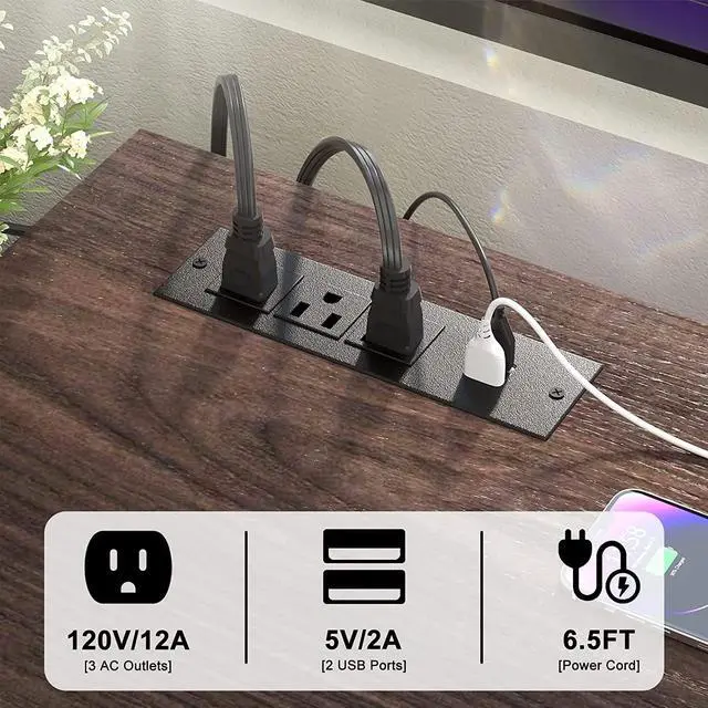 COMPUTER DESK WITH BUILT-IN SOCKET - This L-shaped desk features a built-in power charge station (3 regular outlets and 2 USB ports included), which allows you can keep your laptop, tablet, printer or other everyday devices nearby while charged.