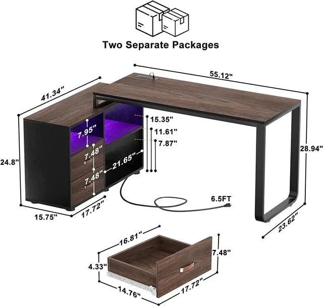 EASY TO ASSEMBLE - All assembly hardware and tools come with the corner desk, with detailed Illustrated instructions, this computer desk can be assembled without effort. No professional assembly skills required. This desk is shipped in 2 boxes, please make sure the two packages are received before assembling.
