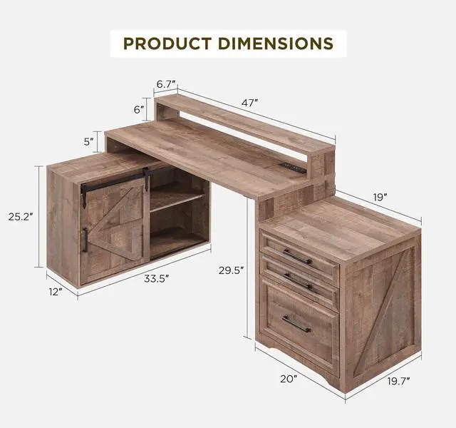 67" Home Office Desk, Modern Farmhouse Computer Desk with File Cabinet Letter T4 F4 Legal, Study Writing Desk, 67 Inch, Light Brown