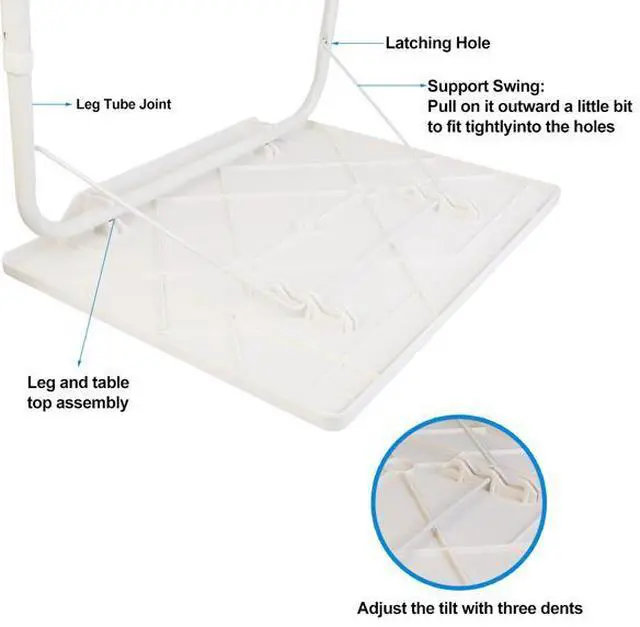 This practical table is designed with great flexibility and mobility to meet the needs of a wide range of people including kids, students, adults and the elderly to work, study, read, write, draw, play board games/puzzles, eat and watch TV in living room, bedroom, dorm or office while taking minimum space. 6 adjustable heights and 3 tilting angles allow you maintain the most comfortable position in different occasions. Lightweight design and the open base let you easily slide the table back and forth while stretching your legs comfortably without hitting the table. Collapsible design means you can store it under a couch or in a closet.