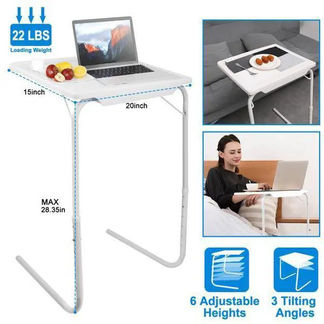 - * Fully Adjustable: Our folding TV tray table can fully adjust to 6 heights from 20.47-28.35in and 3 table top inclination angles including 30°, 60° and 90°to meet different needs for anyone, kids, students, adults and the elderly in bedroom, living room, dorm, office, etc.
