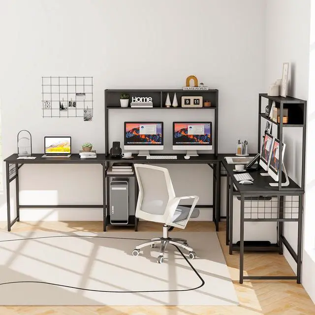 Convertible L-shaped Desk: Designed with 2 ways to install, this versatile L-shaped computer desk offers the flexibility to transform into a 2-person long desk. It is perfect for collaborating or expanding your workspace.