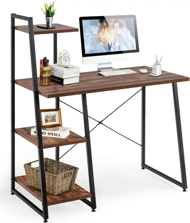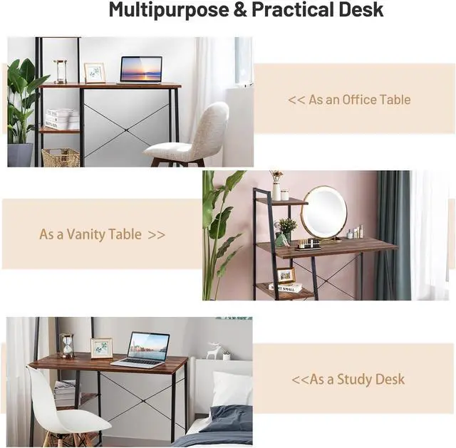 Versatile 2-in-1 Design: This small computer desk combines the functions of an office desk and a bookshelf seamlessly. Its an ideal choice for those who need a functional workspace that also accommodates their reading materials and office essentials.