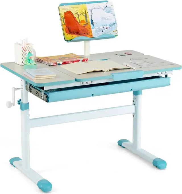 Height-adjustable Kids Desk: With height-adjustable design, this study desk will accompany your fast-growing kid. By rotating the hand crank, you can smoothly raise or lower the desktop (20"-28.8"). You can freely adjust its height to fit kids of different growth stages.