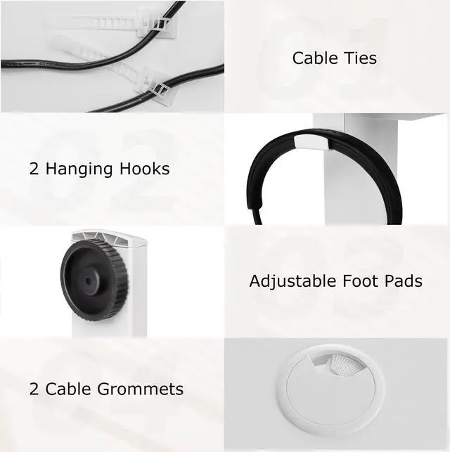 Organization Made Simple: Keep your workspace tidy and enhance productivity with 2 hanging hooks perfect for headphones or bags. And a cable management system including 2 cable grommets and cable ties neatly conceals wires.