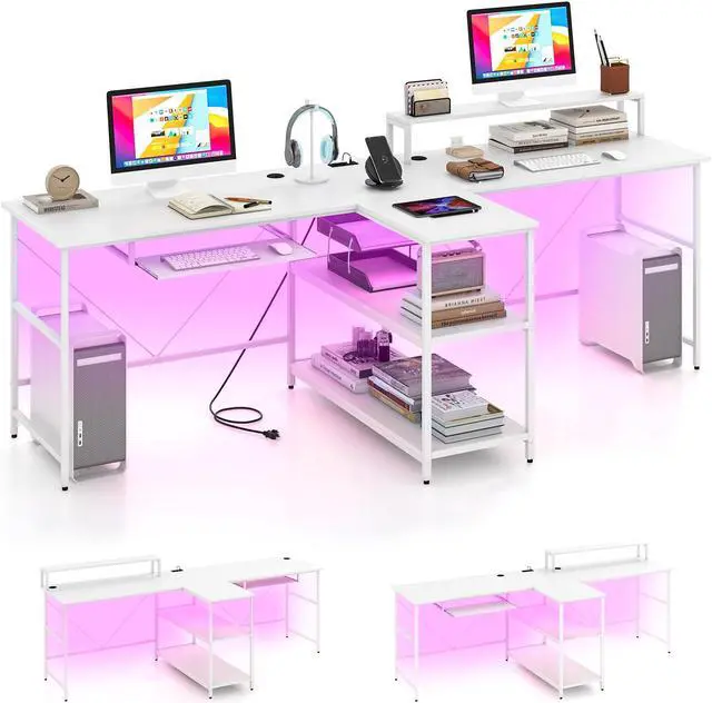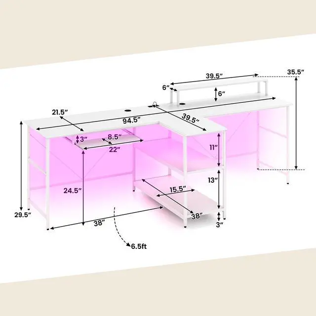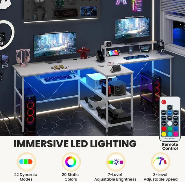 Ambient LED Lighting: Set the perfect mood with immersive LED lighting. This gaming desk comes with a remote control to easily switch between colors and modes, creating an energetic or relaxed ambiance that enhances your work or gaming experience.