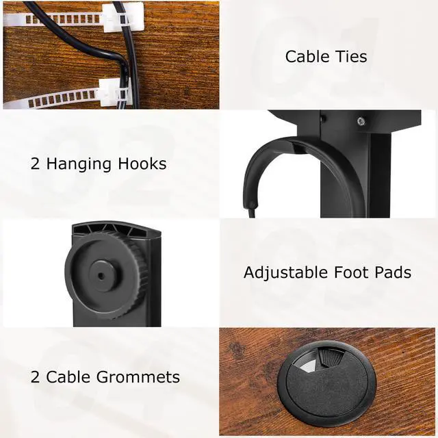 Organization Made Simple: Keep your workspace tidy and enhance productivity with 2 hanging hooks perfect for headphones or bags. And a cable management system including 2 cable grommets and cable ties neatly conceals wires.