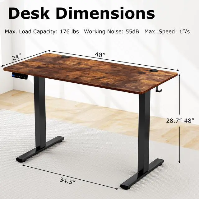 • Desk Dimensions: 48" x 24" x 28.7"-48"/120 x 60 x 73-122 cm (L x W x H)