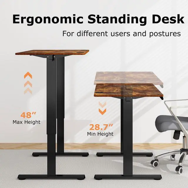 Customizable Height Range: Discover the ergonomic comfort of the standing desk, boasting an adjustable height range from 28.7" to 48". Transition from sitting to standing promotes a better posture and reduces back and neck pain for a healthier workday.