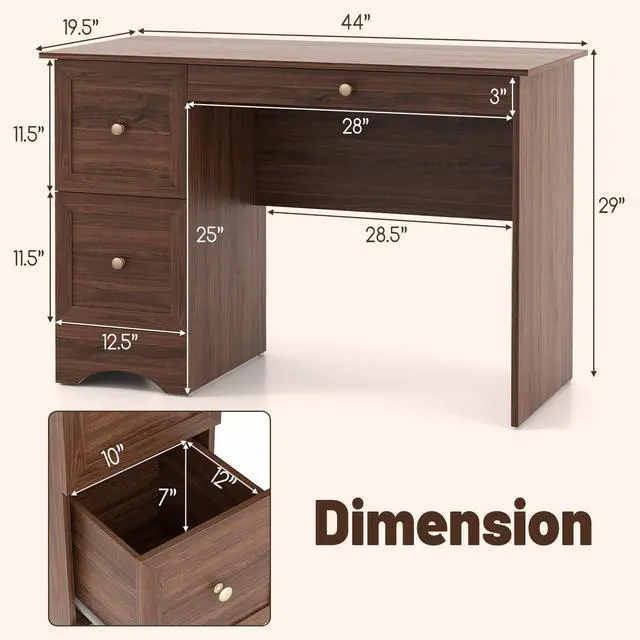 Ample and Comfy Workspace: This home office computer desk boasts a generous 44" x 19.5" desktop, which provides ample room for your essential office or study supplies. Along with the spacious legroom, you are able to work comfortably and immerse yourself in your tasks.