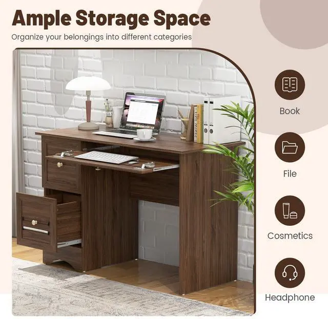 Abundant Storage Space: Equipped with 2 deep drawers, the study writing table holds a variety of items and keeps them away from dust. What's more, the 2-in-1 keyboard tray also serves as a unique drawer to satisfy your different requirements. You have the final say about how to use it!