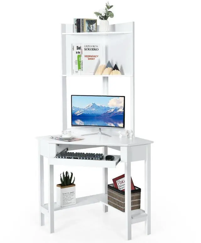 Wide Desktop and Convenient Keyboard: The spacious triangle desktop provides enough space for your working needs and keeps you away from messy environment. The keyboard tray with metal slide rails underneath the corner desk is designed to free up more tabletop surface and bring much more convenience in working or studying.