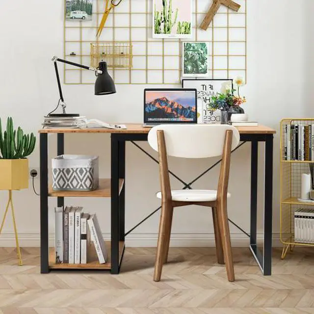 -Featuring two open lower shelves, this desk provides ample space for storing office supplies, books, printers, or decorative pieces. The industrial open-frame design keeps everything within arms reach while maintaining a spacious and clutter-free workspace.
