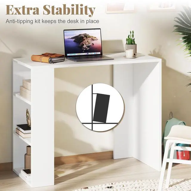 Stay Organized, Stay Focused: With 3 open shelves, this office desk offers ample storage for books, files, and decorations, keeping everything within reach while freeing up tabletop space. Say goodbye to clutter and hello to a tidy, distraction-free workspace!