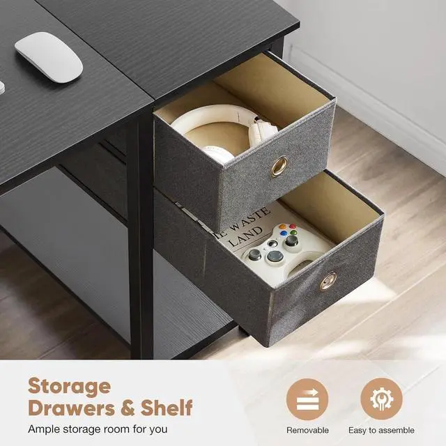 Simple Deluxe Computer Desk with Drawers 40 Inch Office Writing Work Kids Study 2-Tier Wood Corner Table with Storage Drawers Shelf for Bedroom Home Office - Black